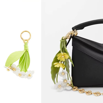 धातु की अंगूठी के साथ फूल क्लस्टर माइक्रोफाइबर चमड़े के बैग आकर्षण, पर्स या बैकपैक के लिए सुरुचिपूर्ण कीचेन पेलेंट